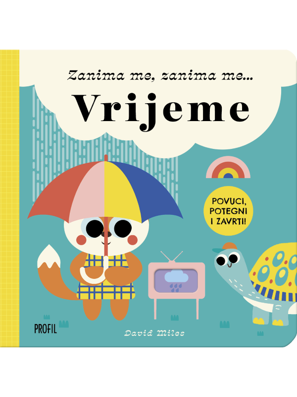 Interaktivna STEM kartonska slikovnica otkrit će djeci prve pojmove i osnovne informacije o oblacima, vjetru, temperaturi, oborinama, ekstremnim vremenskim uvjetima i upoznati ih kako mjerimo i predviđamo vrijeme.